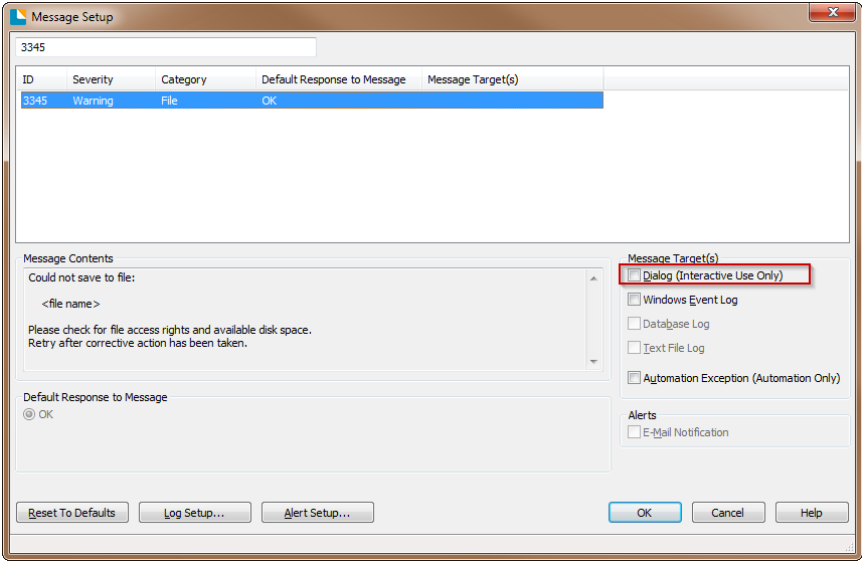 7. Now, inside BarTender, access the "Administer > Application Message Setup" dialog and configure the 3345 message as follows: