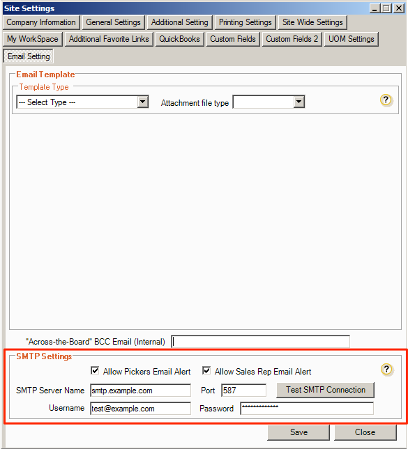Click "Test SMTP Connection" to verify that the SMTP settings are configured correctly. If the test is not successfully, make the appropriate changes until the test is successful.