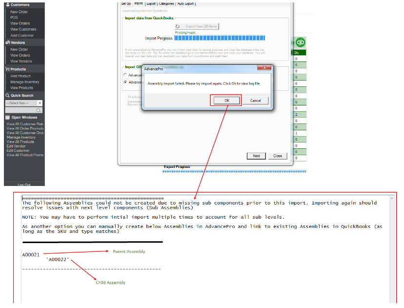 AdvancePro has a new feature that allows you to import multiple-level assembly BOMs from QuickBooks.
