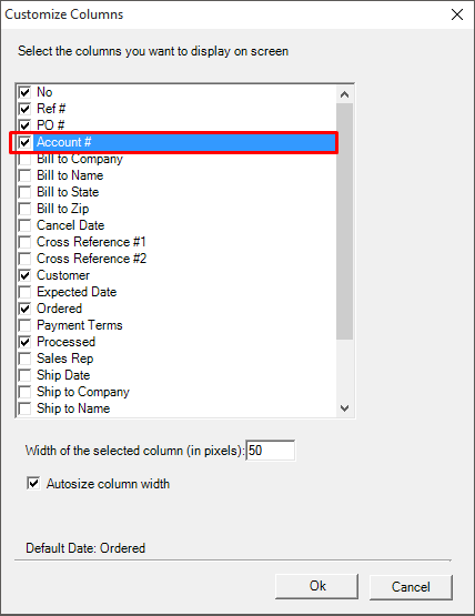 You may also change the date that the View All Orders screen uses to sort orders by default by selecting a different date field to include on the screen and clicking Default Date.