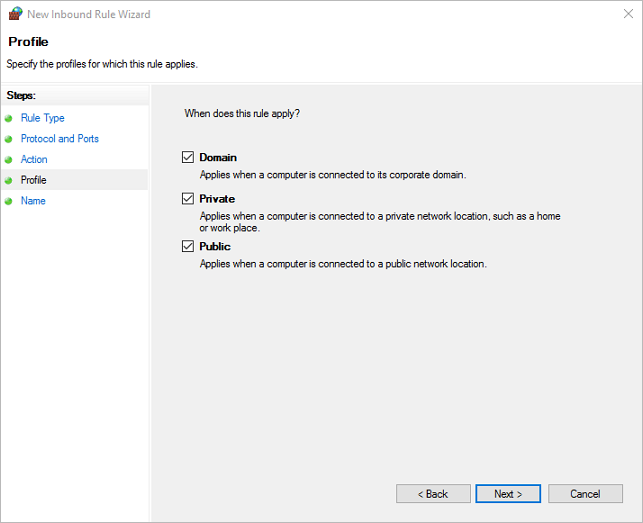 9. On the left pane of the Windows Firewall with Advanced Security screen select Inbound Rules > On the right-most pane, click New Rule to bring up the New inbound Rule Wizard