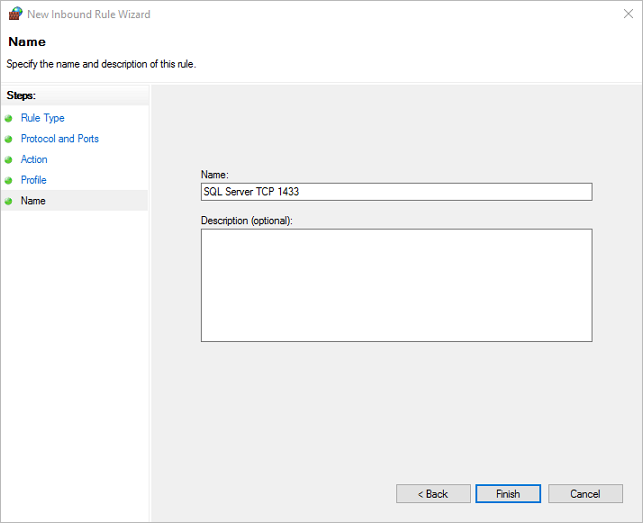 14. In the Name section enter a meaningful name and/or description for the rule > Click Finish