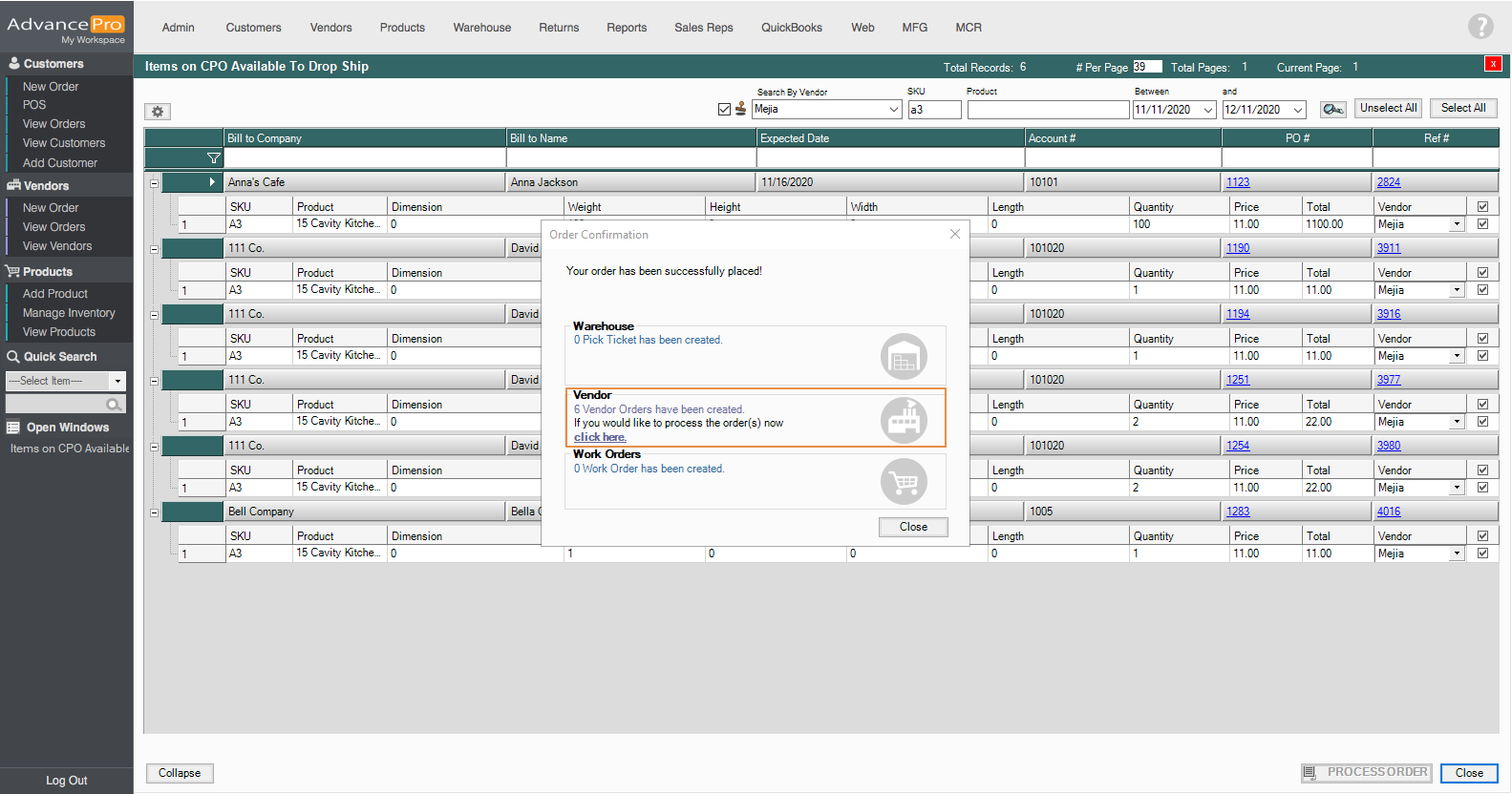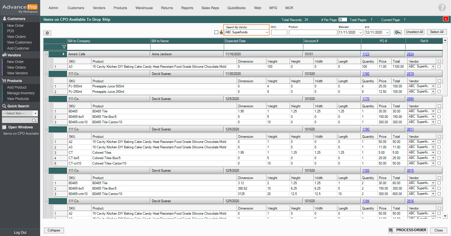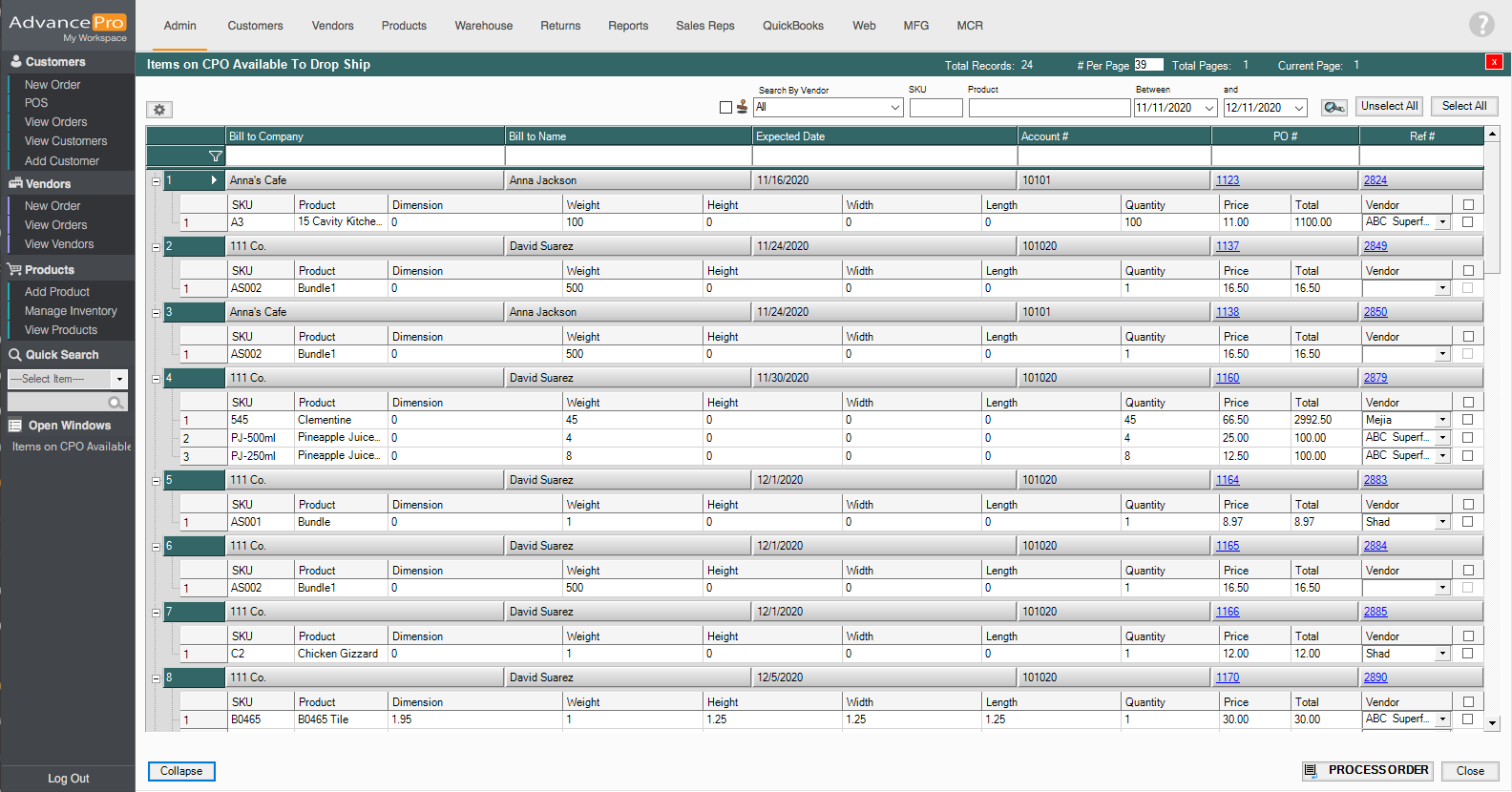 - To access the new feature, go to Customers switchboard and click on Batch Drop Ship.