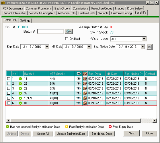 3. You can now check the batch #'s you've assigned to products. Under the View All Products panel you can select the product that