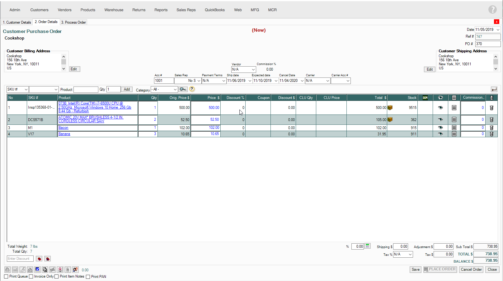 To access these functions go to Customer > Place an Order > Select a Customer and Add products