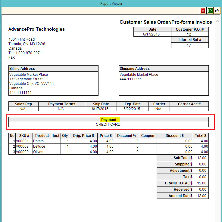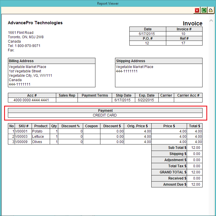You can make use of Custom Fields for Orders to indicate a credit card payment if you don't want to use the actual payment feature of AdvancePro.