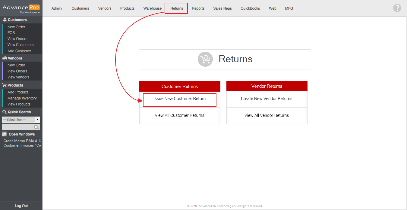 NOTE: to learn more on how to Issue Customer Returns, click here.
