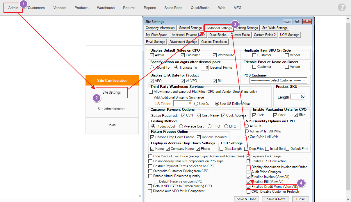 • To Activate this Feature, you need to enable Finalize Credit Memo (View All) in Site Settings.