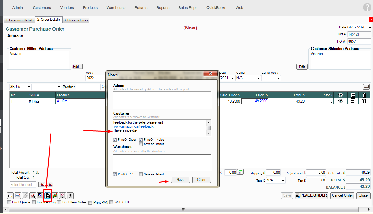 If you need to update the notes while you are working on the order, you can click the Notes icon > Edit the notes and then click save. This will only update the notes on that specific order.