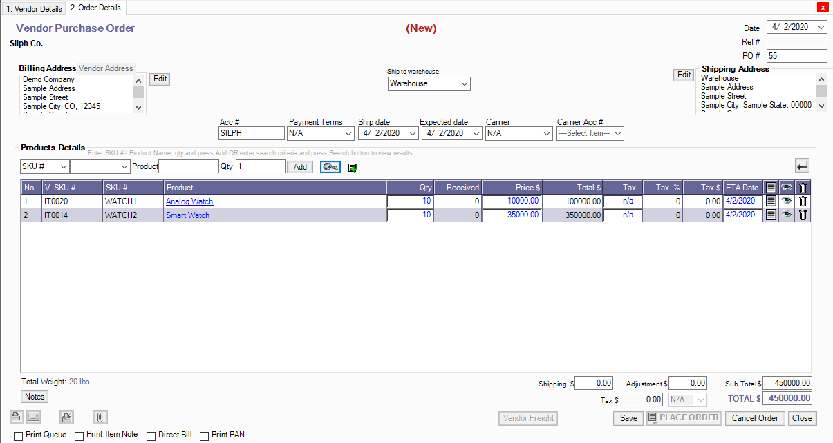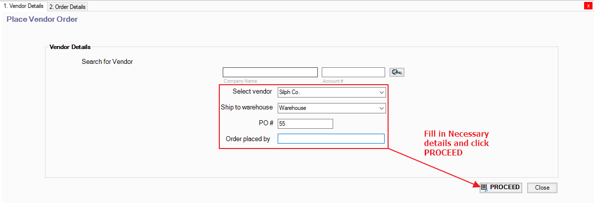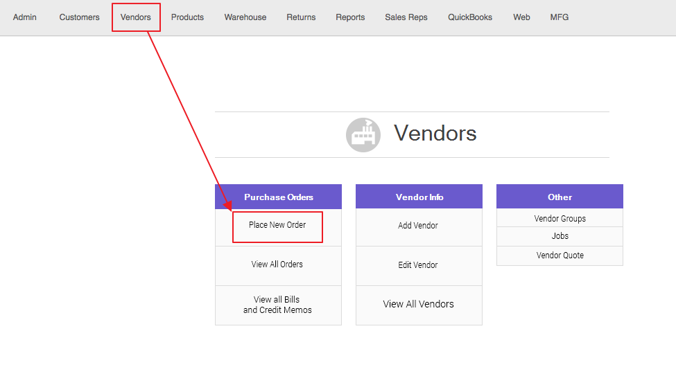 1. Go to Vendors and Place a New Vendor Order