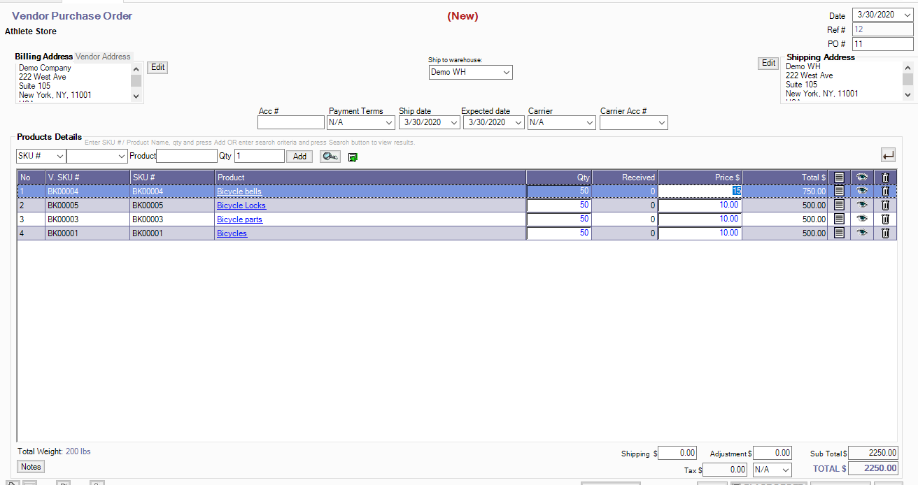 1. Create a Vendor Purchase Order
