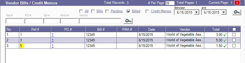 7. Because the reference and PO numbers are the same, you will always see that bill when you search for the original.