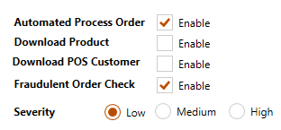- On the settings page, click to enable the Fraudulent Order Check option and then select one of the severity levels.