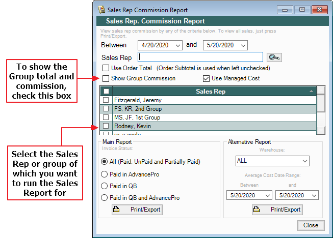 By checking the Show Group Commission checkbox, the generated report will show the commission of the group as a whole, if unchecked, the generated report will show the commission of the members associated to the group.