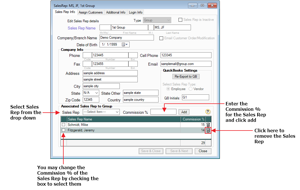 Note: upon changing the type of an existing single-type Sales Rep to group, you will be unable to change it back to single.