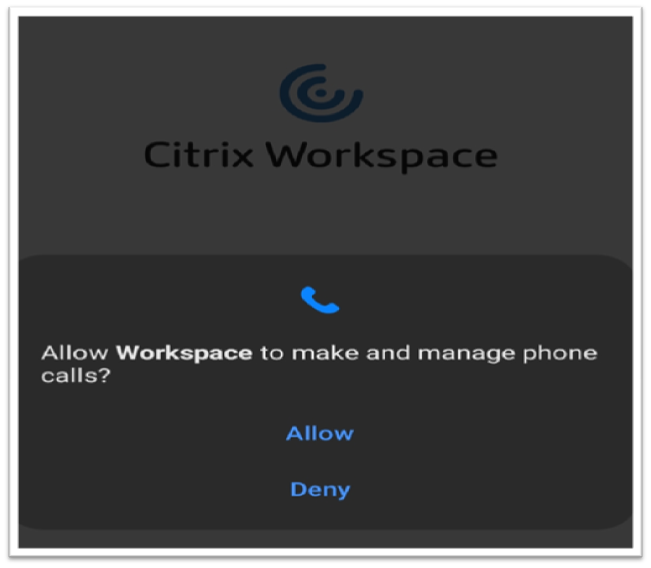 Tap “ALLOW” to grant access for the Citric Workspace app to make and manage phone calls.