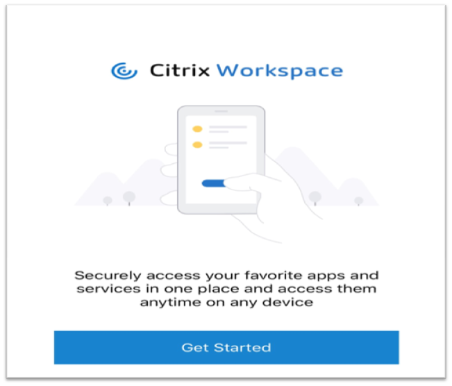 - Open the Citrix Workspace app on your IOS Device; then tap on “Get Started”