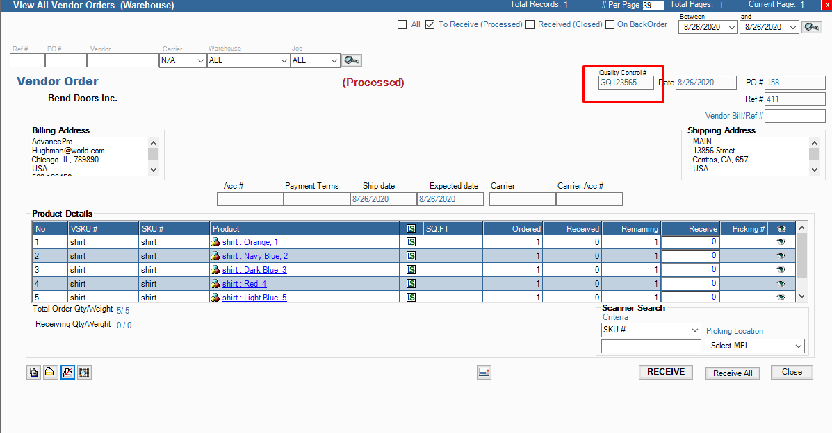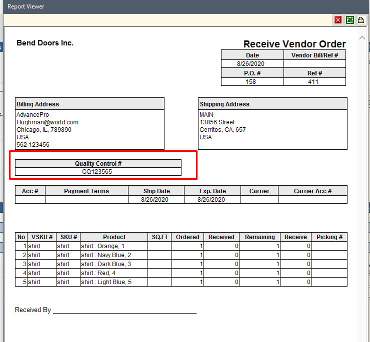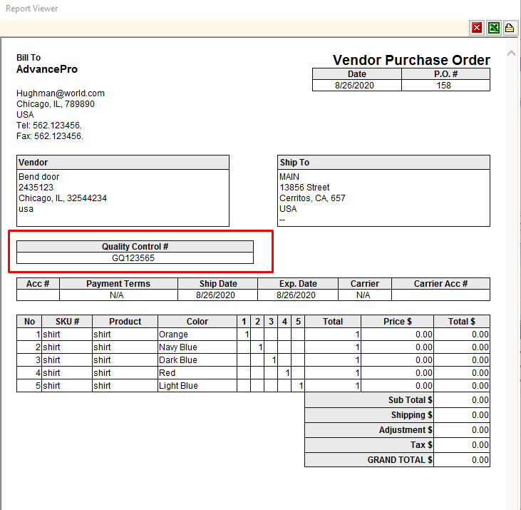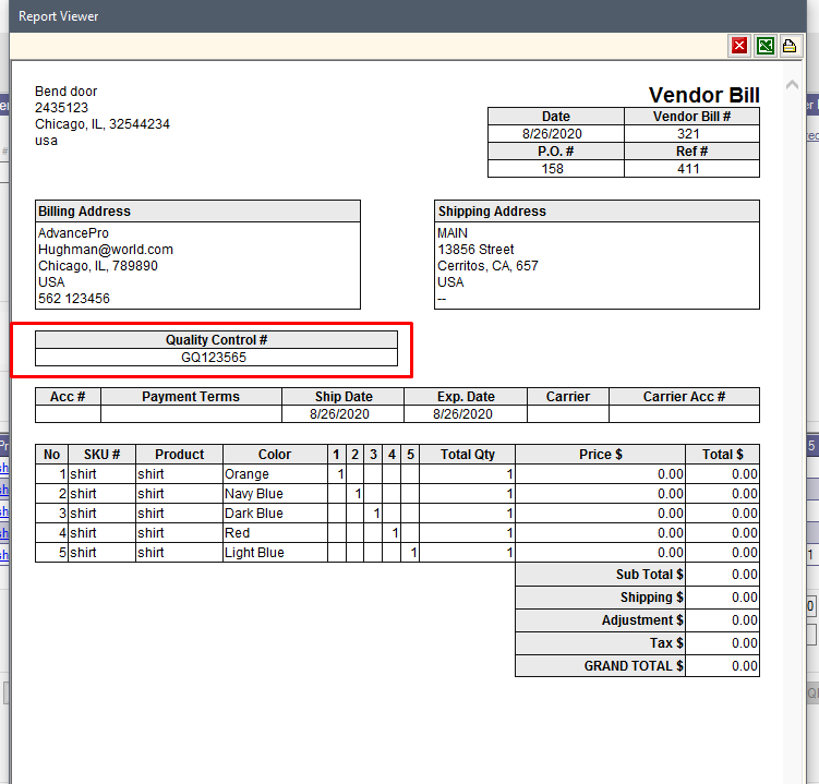 AdvancePro now has a feature to add a cross-reference labels for Vendor Orders. This can be displayed on Vendor orders, VPO to be received in the Warehouse and/or Vendor Bill.
