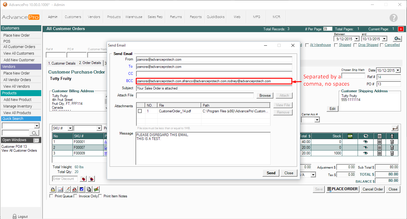 HOW TO Add Multiple Email Addresses on Email from AdvancePro Software