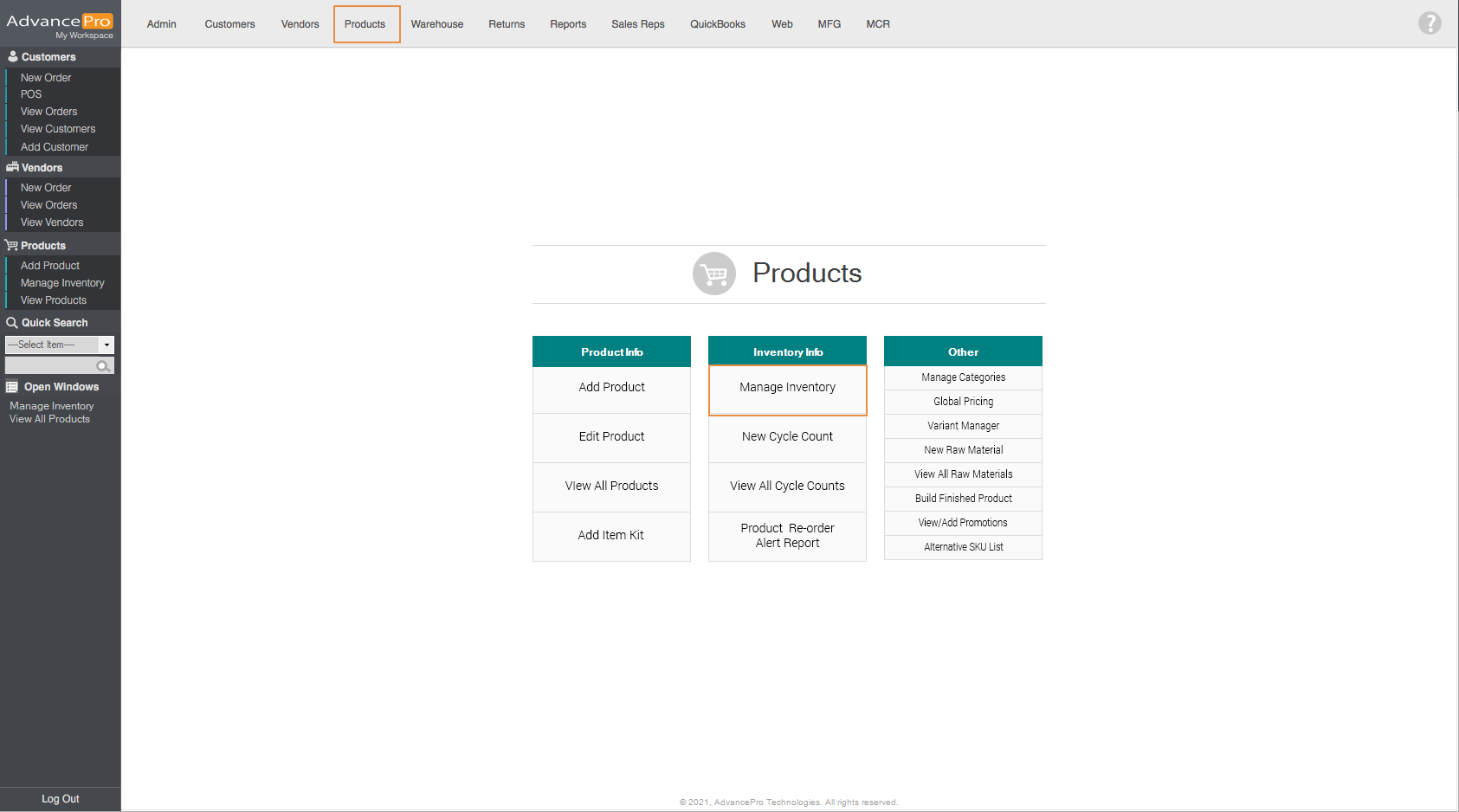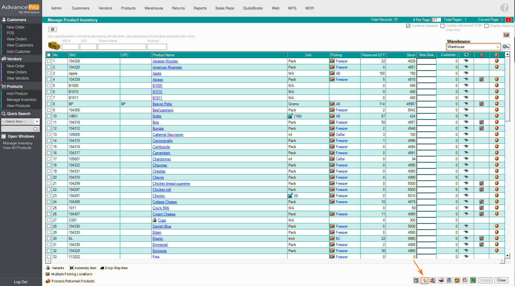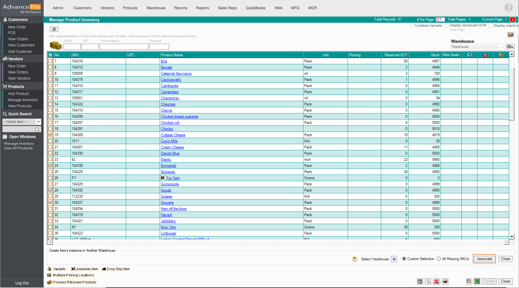 AdvancePro has added the ability to assign selected SKUs to different warehouses without the need to process a transfer