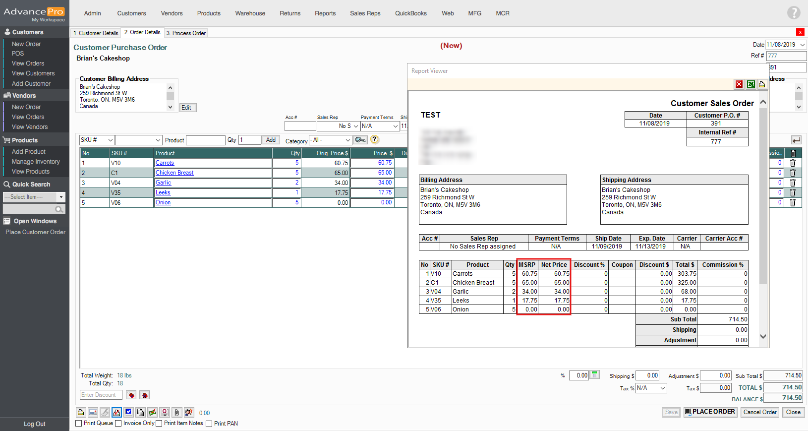 Customer Purchase Order