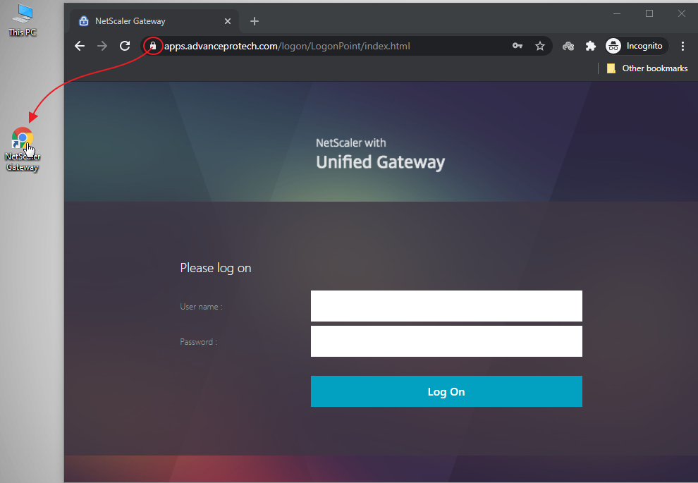 2. Drag and drop the View Site Information icon (Padlock icon) on the desktop to create a shortcut.