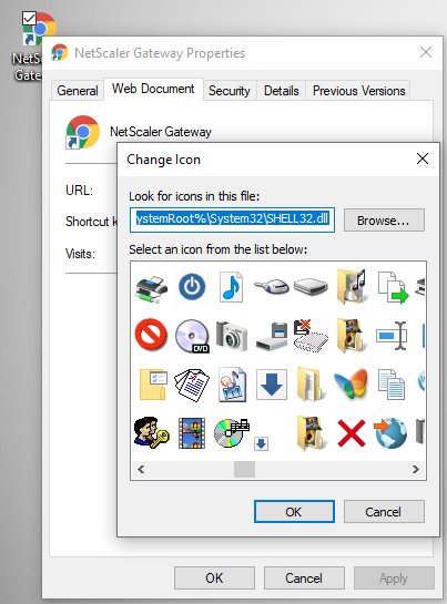 3. Change the icon (Optional) - Right Click > Properties > Change Icon > Select desired icon > Click Ok > Apply