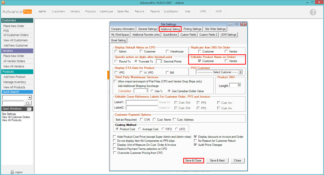 2. Additional Settings> Editable Product Name on Orders. Check which one you would like to enable. (Customer or Vendor)