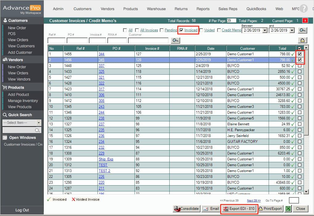 To export invoices from AdvancePro to TrueCommerce, simply perform the following steps: