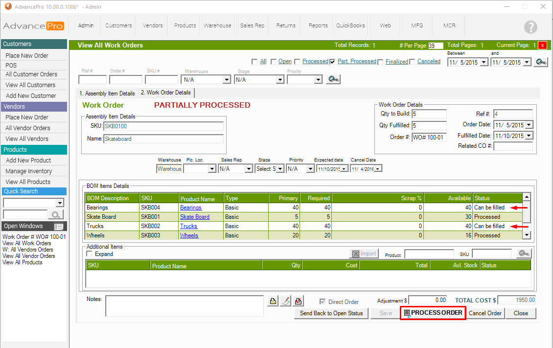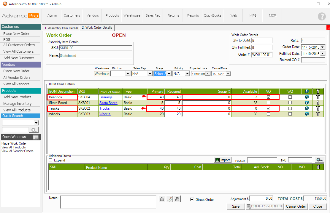 HOW TO: Generate a Vendor Order from Work Order with Insufficient Stock