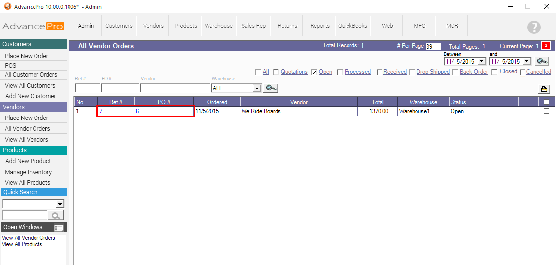 You can locate this by going to Vendors >> All Vendor Orders
