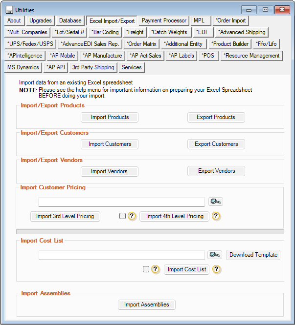 - Click Admin switchboard, find Utilities and then click on Excel Import/Export tab