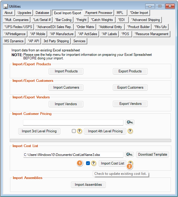 - If there will be changes to the cost list in the future, you can update existing cost list by clicking the checkbox and import