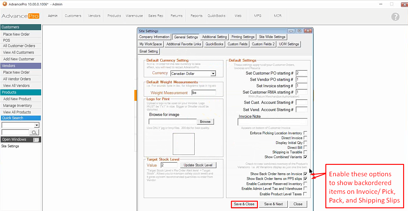 [ ] Show Back Order Items on Invoice