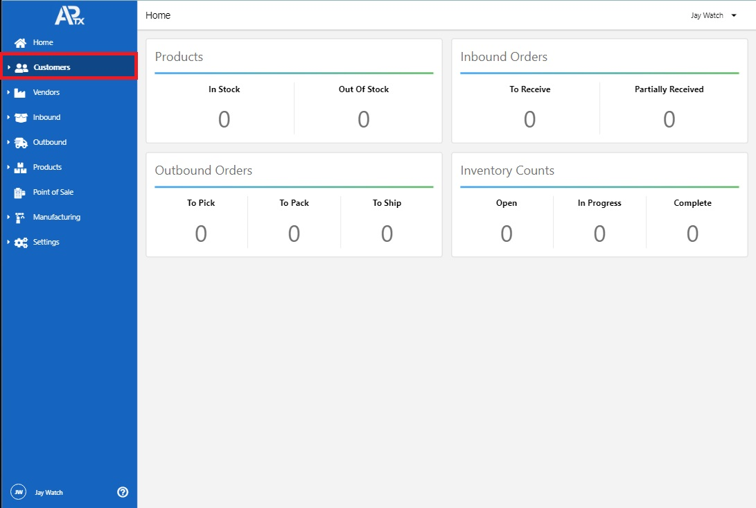 4. Select >> SEARCH bar to search for a customer or Enter the Customer name in the search bar.