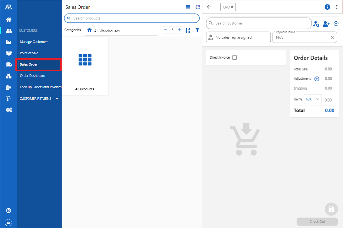 5. Select >> WAREHOUSE Icon to set your order to the Warehouse.