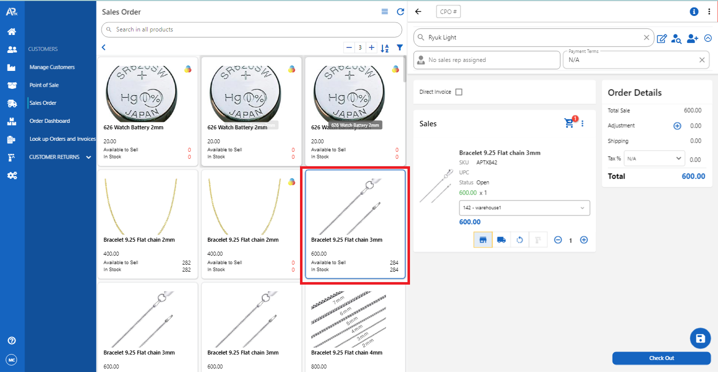 12. Select the Refresh Icon to send it to Back Order, Select >> CHECK OUT