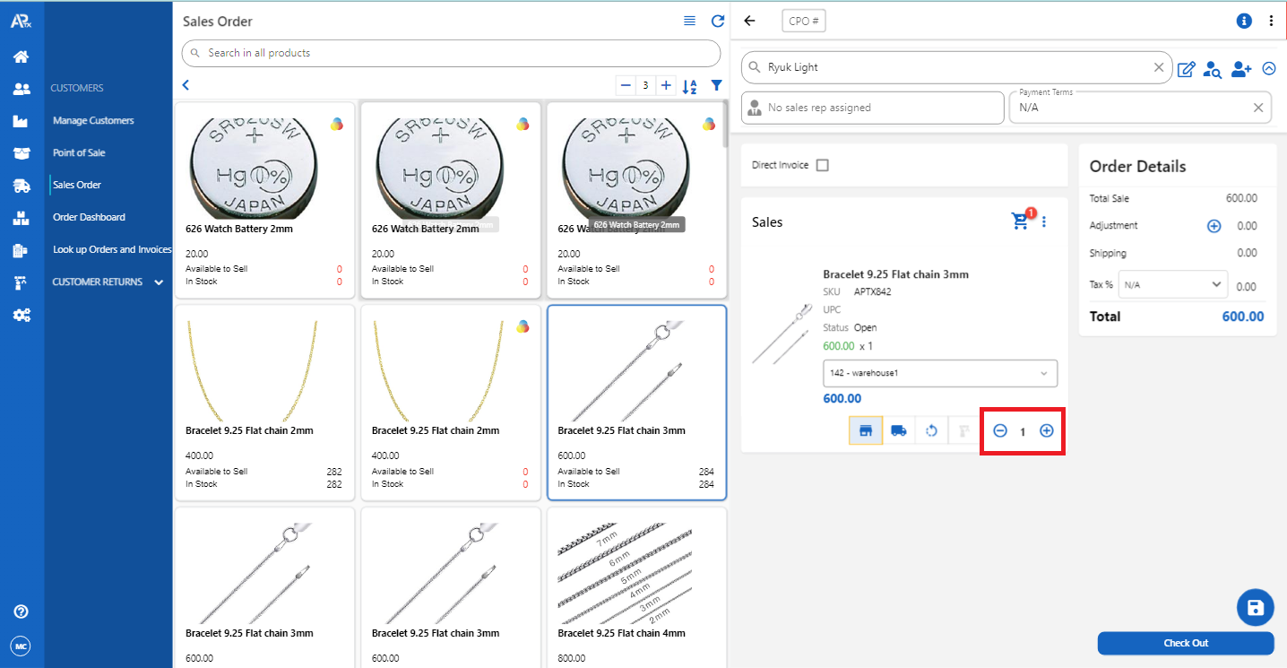 6. Enter Product Quantity, you can click the plus icon to increase product quantity or click the minus icon to reduce or subtract the product's quantity