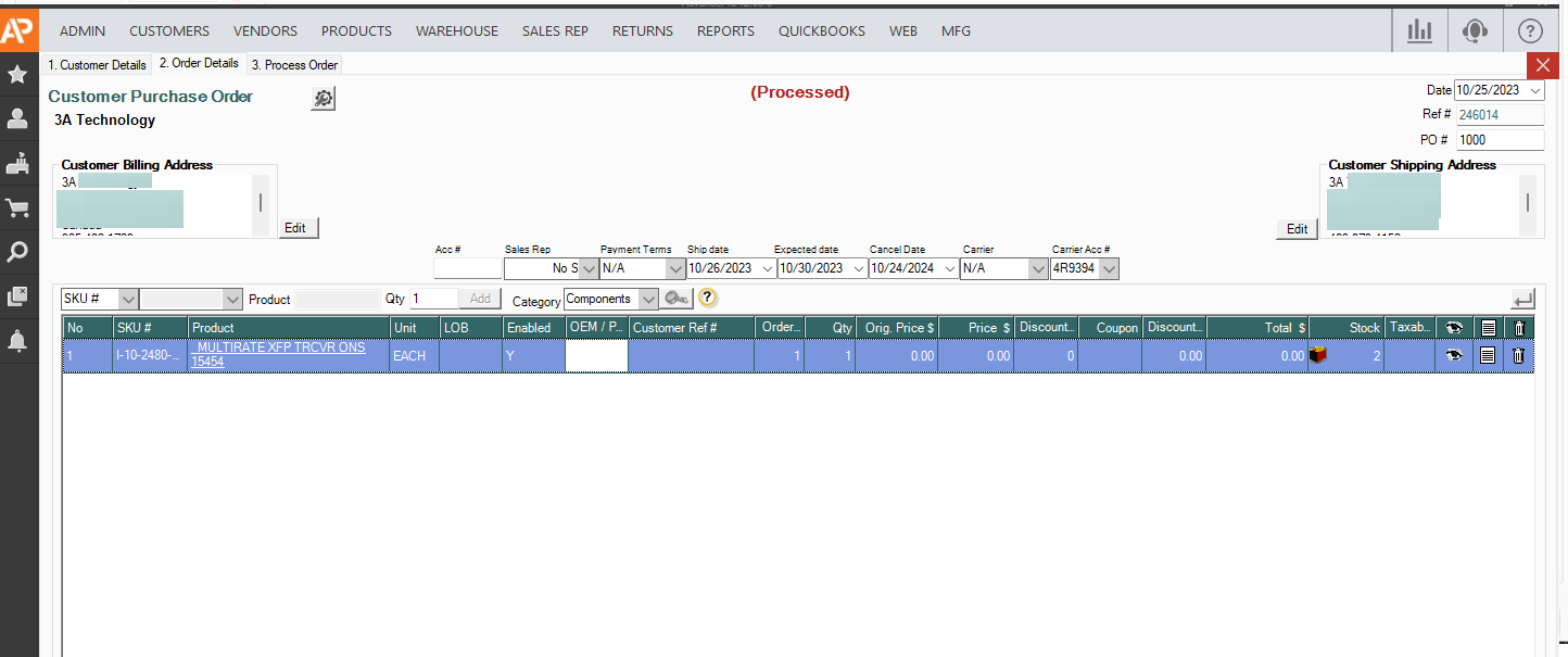 10. To Modify the order, open it and go to the second tab, "Order Details"