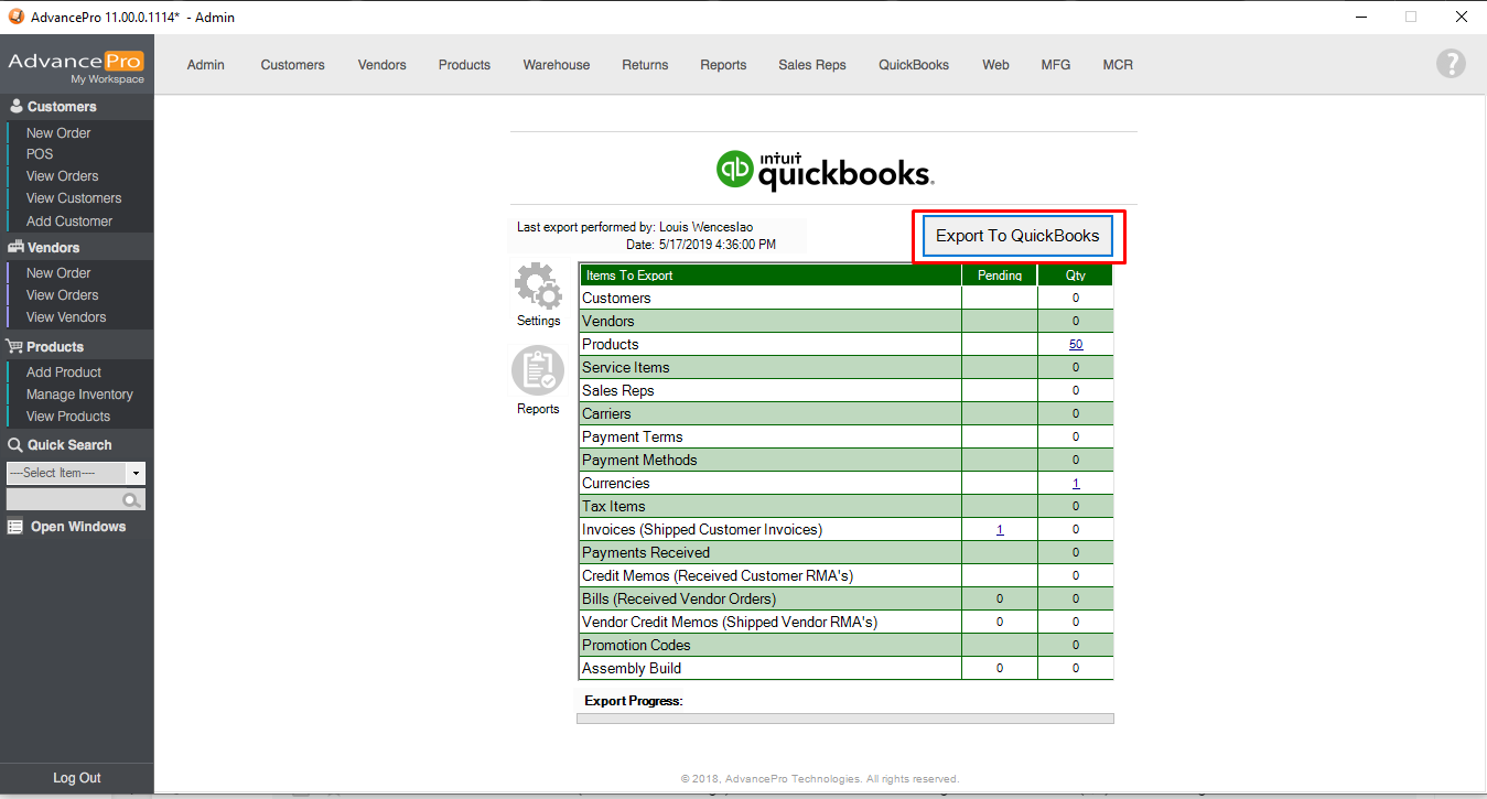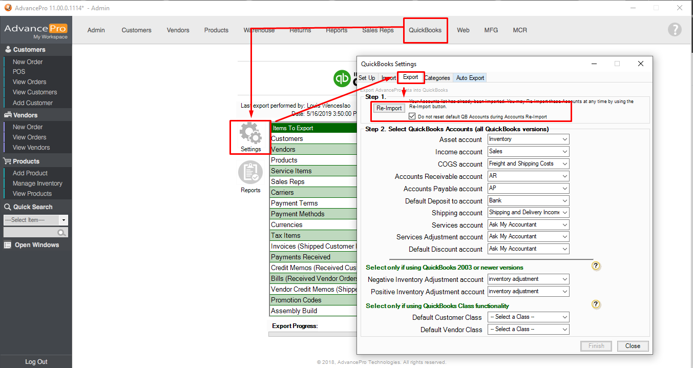 Import the new AR account into AdvancePro. QUICKBOOKS>>SETTINGS>>EXPORT TAB>>RE-IMPORT. NOTE: DO NOT RESET DEFAULT ACCOUNTS MUST BE CHECKED