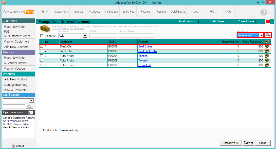 1. To unreserve products based on customer level, go to Customers >> View All Customers