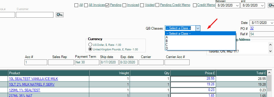 5. Once done, the classes set up in Quickbooks should now reflect in AdvancePro.