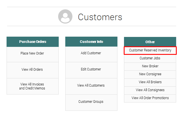 5. To view a report on Customer Reserved Inventory, go to Customers >> Customer Reserved Inventory.