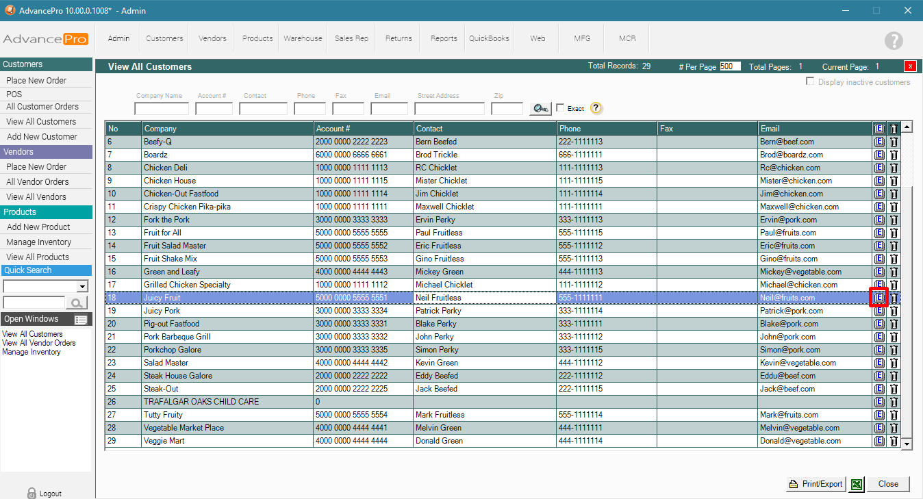 Select the customer and hit Edit [E]