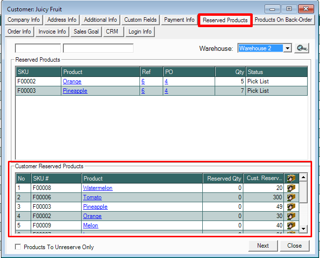 9. Go to Reserved Products Tab to view the reserved inventory