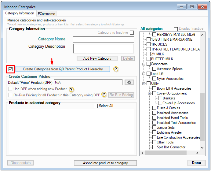 If you answered YES to any of the above you can check the box and click the button to automatically create all categories bases on your QuickBooks Parent/Child hierarchy.