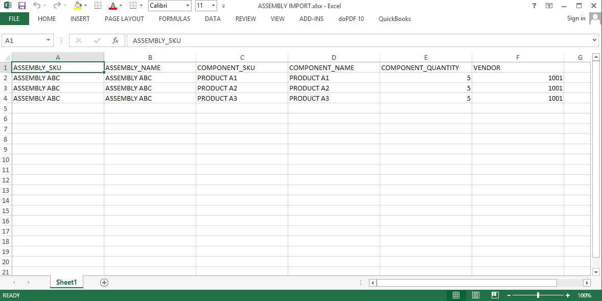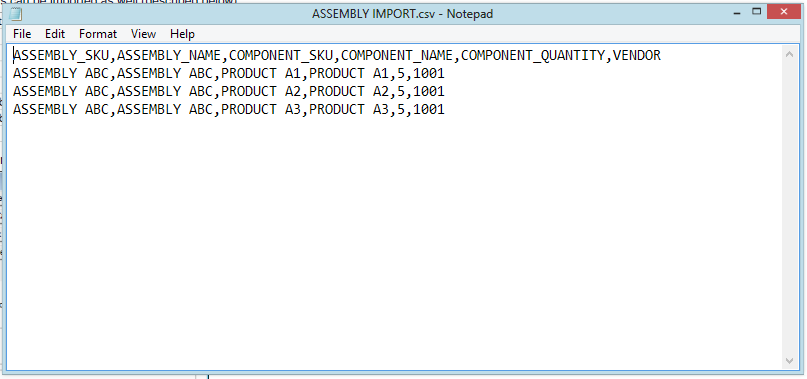 You may import your assemblies in CSV format using the same steps and mechanics found on this link: