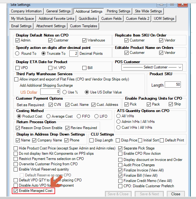 2. Open the Additional Settings tab and check the box of Enable Managed Cost
