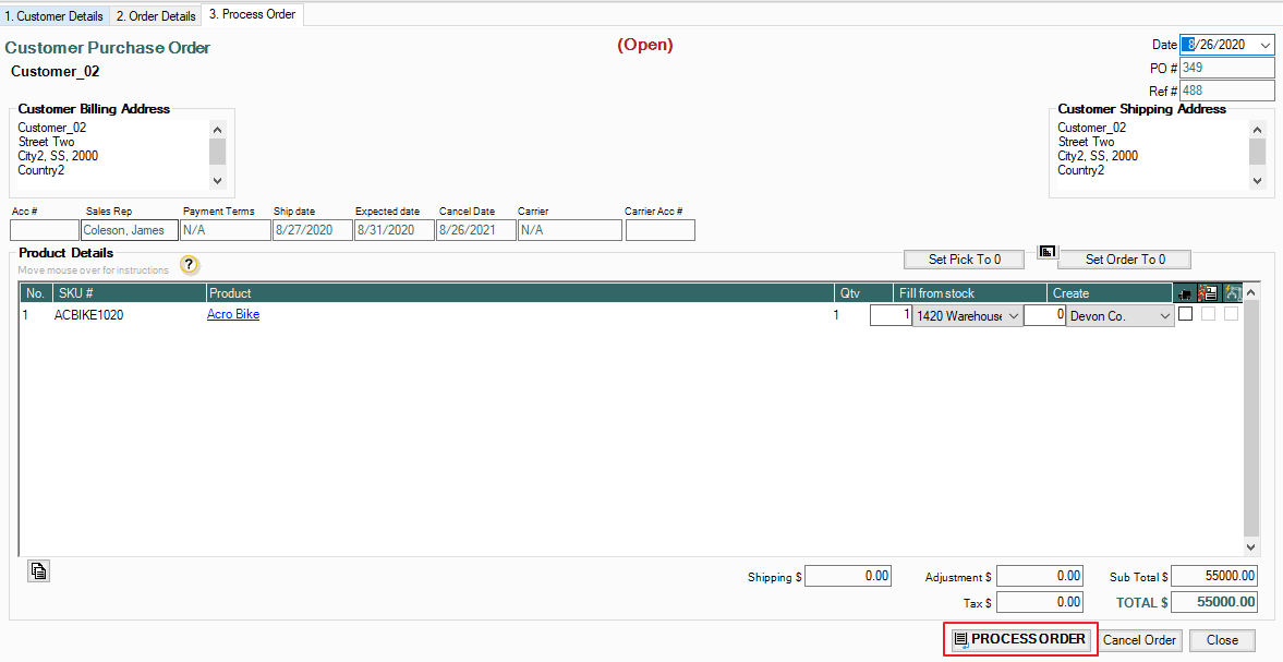 • Process the Order and Create an Invoice for the Customer Purchase Order