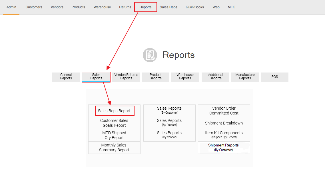 1. Go to Reports > Sales Reports > Sales Reps Report